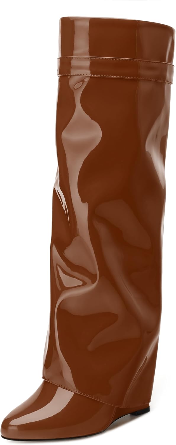VJH confort Women's Slip on Ankle Boot, Western Almond Round Toe Low Heel Elastic Chelsea Bootie
